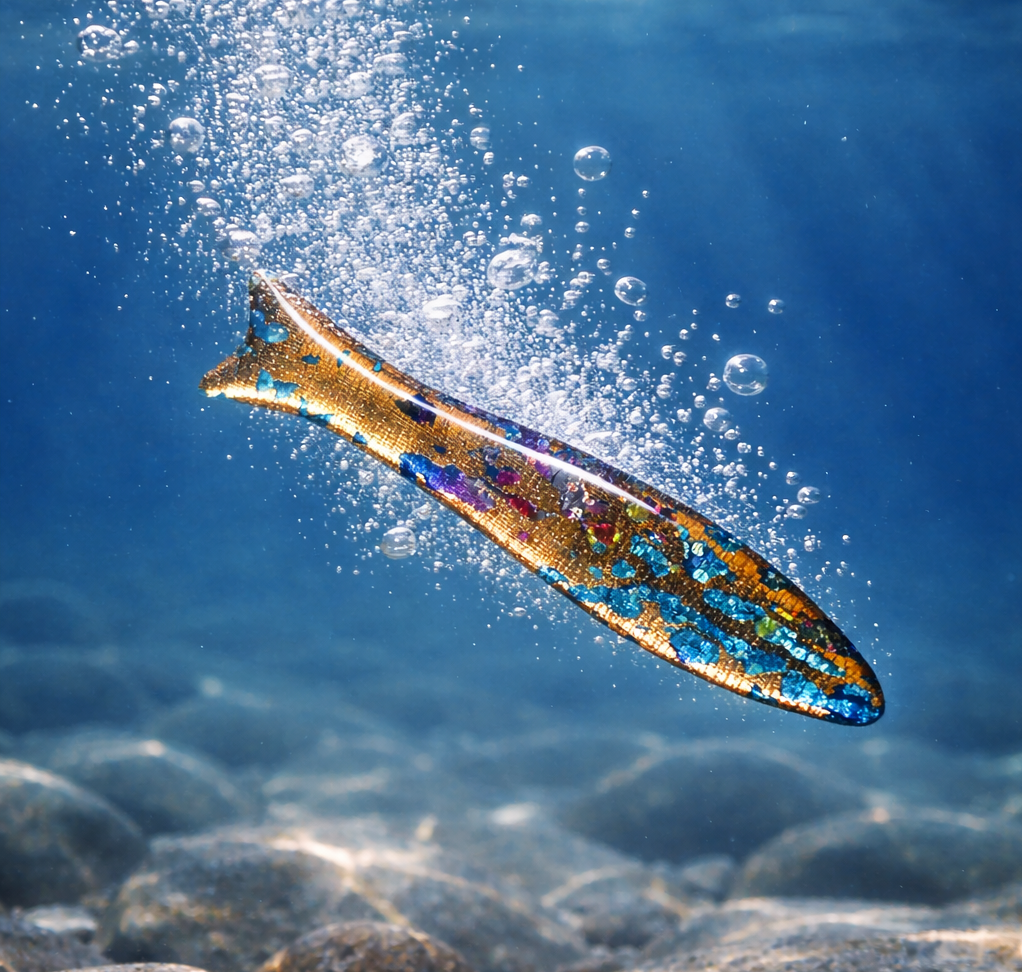tato pestrá rybka je velmi hrdá na své barevné šupinky a ráda je vystavuje na odiv. Často lze spatřit dvojici nebo i skupinku měděnek jak se předvádějí před ostatními rybkami. Rybka je ručně vyřezávaná, broušená, pigmentovaná a lakovaná. Má krásný jemný povrch. Upevněna je na klasickém brožovém špendlíku. Jedná se o originální ruční výrobu.